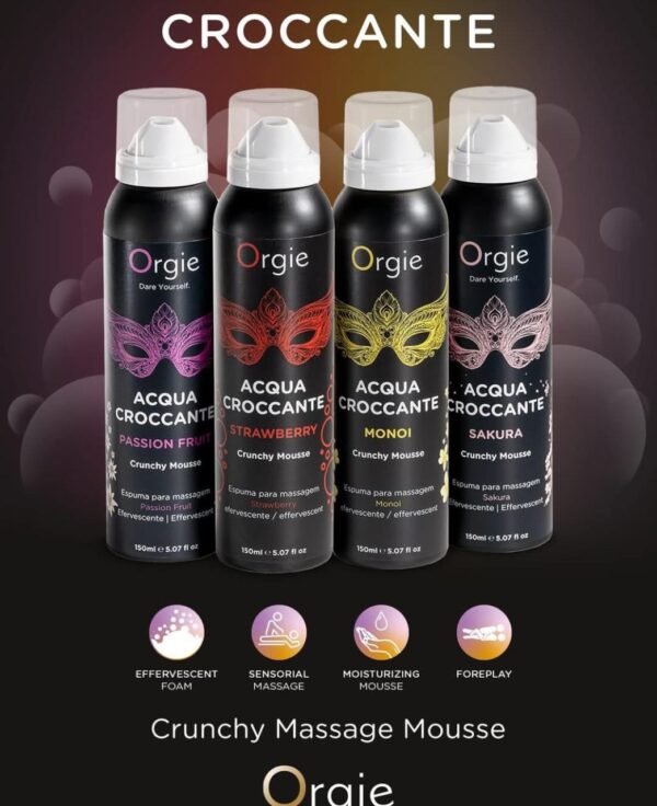 Acqua Croccante est bien plus qu’une mousse hydratante pour le massage du corps. C’est une délicieuse surprise, idéale pour les préliminaires ! Appliquée sur la peau et massée, elle crée une sensation d’effervescence croquante très agréable et amusante, laissant la peau hydratée et non collante.